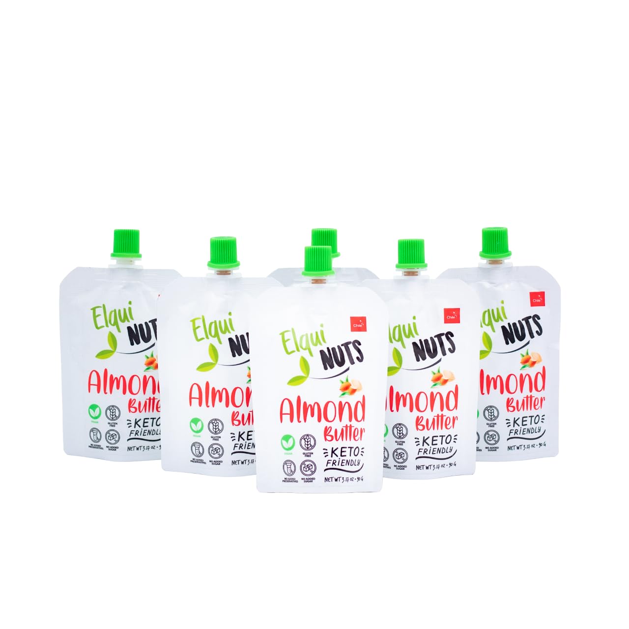 Elqui NUTS - Almond Butter (6 Pack) Pouch Format, Made With 100% Roasted Almonds, One Ingredient, NO PALM OIL, Sugar Free, Vegan, Paleo And Keto Frendly